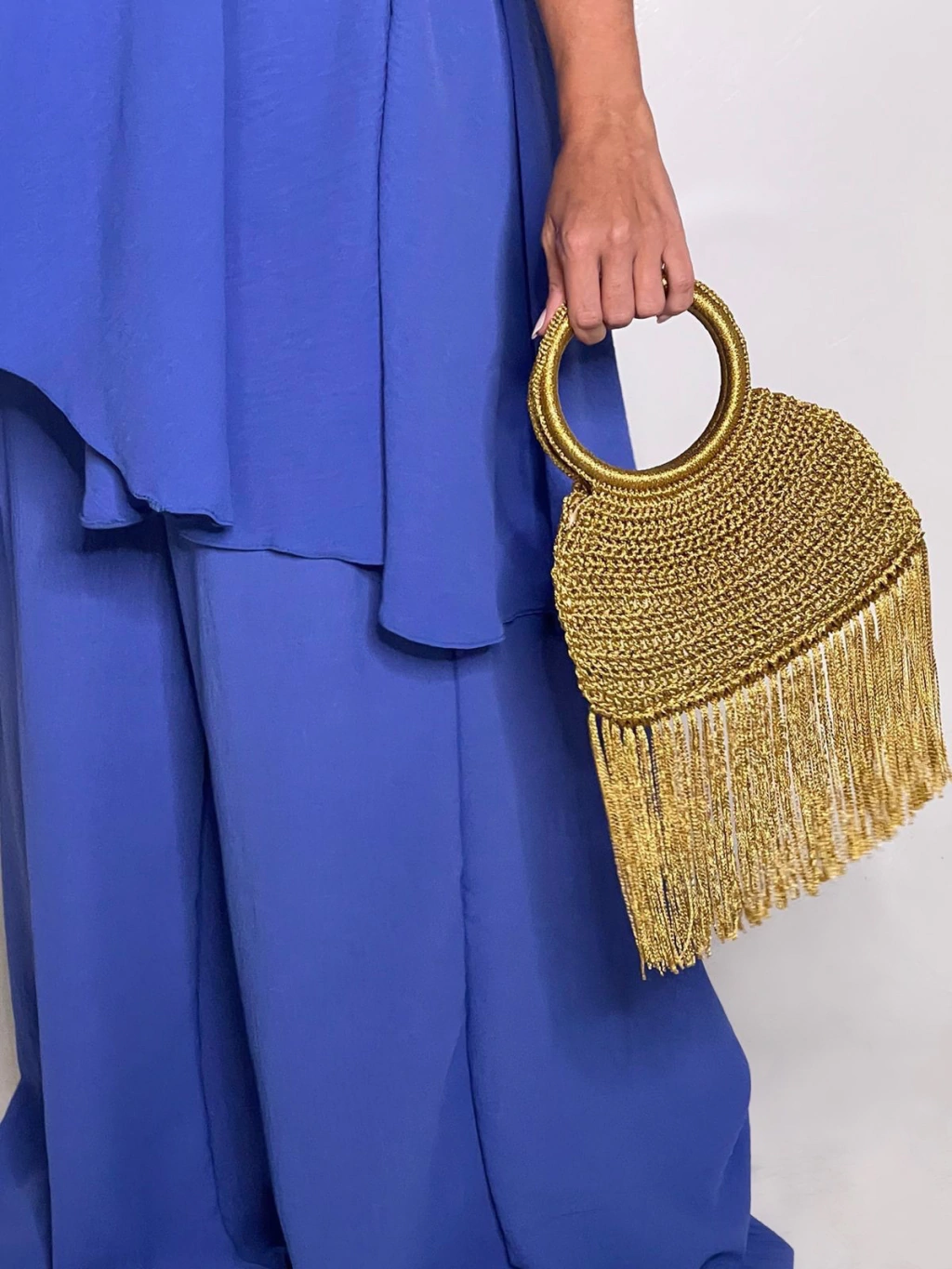 Com design autoral, a nossa Malibu é produzida artesanalmente em fios de viscose acetinados. Suas franjas refletem um brilho e shape que encantam.
